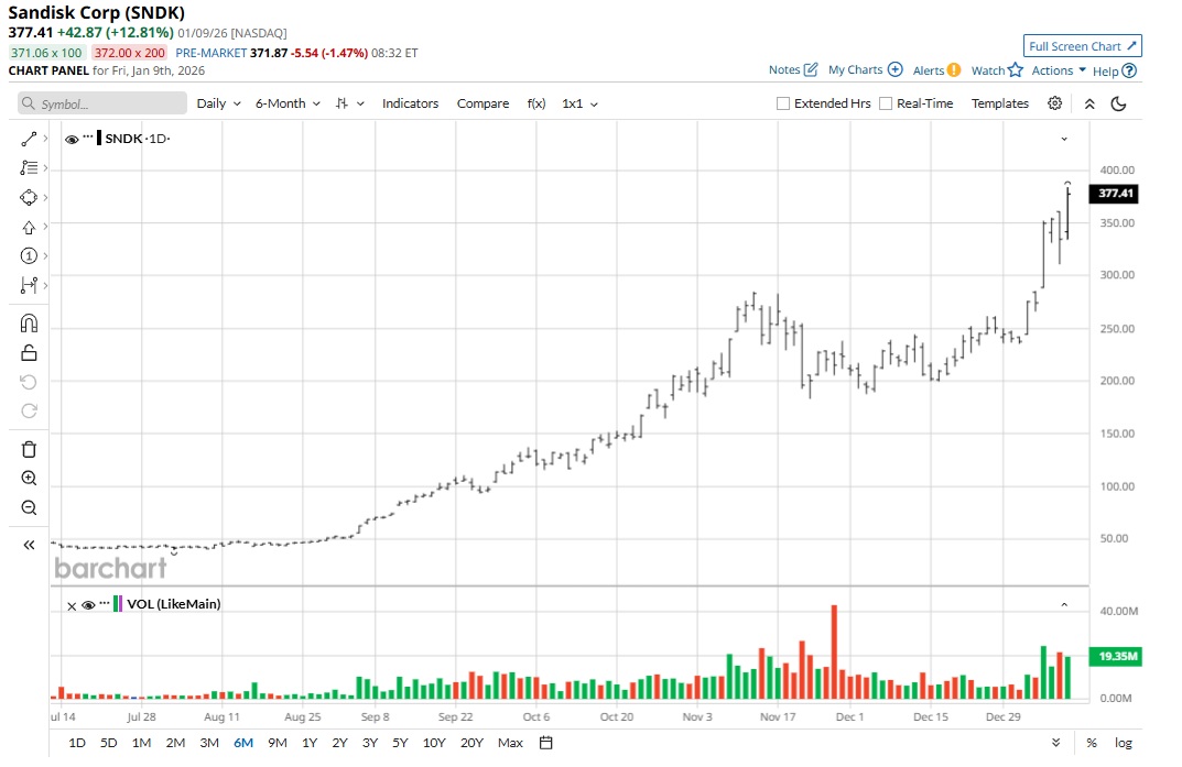 To put things into perspective, SNDK stock has surged by over 60% within the first two weeks of 2026. This sharp upside comes after multi-fold returns in the prior year.