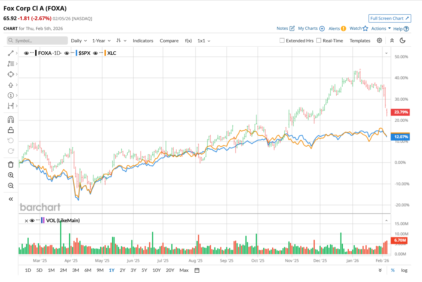 Zooming in further, FOXA has outperformed the State Street Communication Services Select Sector SPDR ETF’s (XLC) 13.4% rise over the past 52 weeks. However, it has trailed XLC’s 1.3% YTD decline.