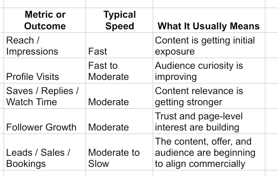 This is one of the most important questions in social media marketing. If impressions are improving but engagement depth is not, the content may be discoverable but not persuasive. If profile visits rise without follower growth, the page may be attracting curiosity but failing the trust test. If engagement rises yet conversions remain low, the content may be working better than the offer. These are not signs that “social media takes too long.” They are signs that one stage of the funnel is improving while another still needs work.
