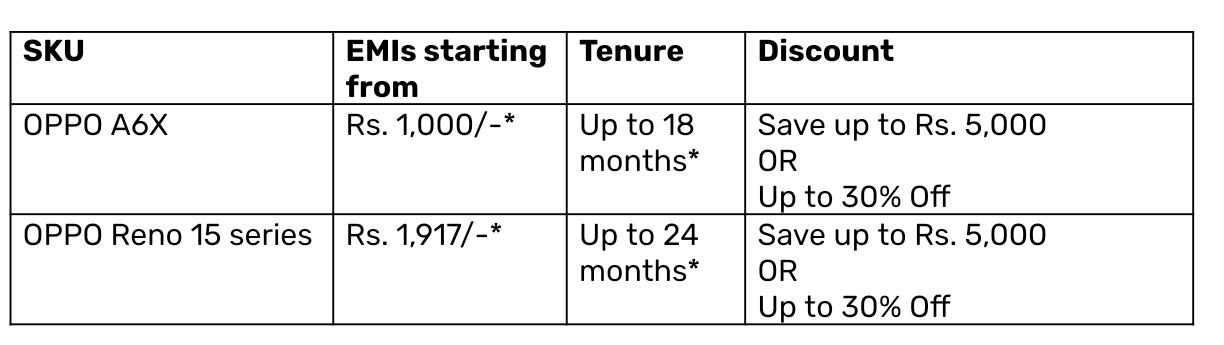 Bajaj Finserv has also launched a limited-time zero down payment offer on the following OPPO phones, valid from 1st April to 30th April 2026: