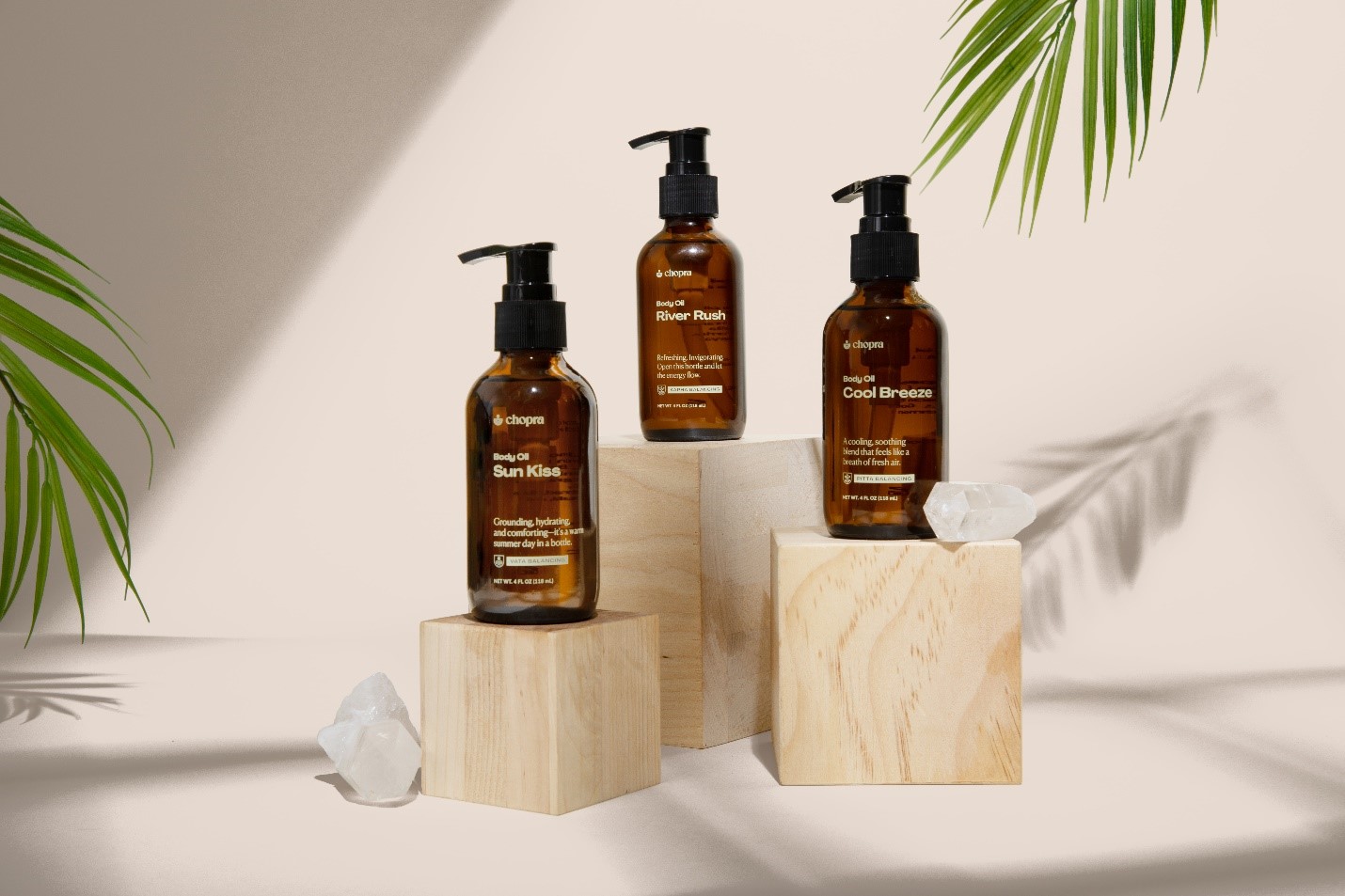 To join the Chopra Signature Body Oils waitlist, visit Chopra.com/shop/body-oil-collection.