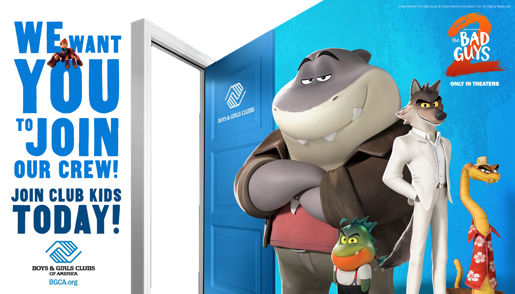 “Boys & Girls Clubs are places where good happens every day – places where young people open the door to supportive environments and opportunities that help them thrive,” says Chad Hartman, National Vice President of Corporate Partnerships & Growth. “Being chosen for this partnership with DreamWorks Animation’s The Bad Guys 2 is a tremendous honor, and we’re energized to inspire, empower and encourage moviegoers to join us in creating positive change in their communities as they head to their local theatres this summer.”