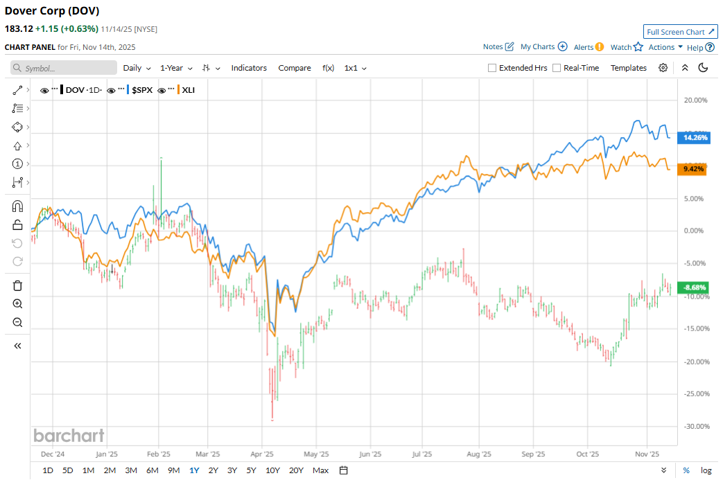 Narrowing the focus, DOV has also underperformed the sector-focused Industrial Select Sector SPDR Fund’s (XLI) 8.7% surge over the past year and 15.4% gains in 2025.