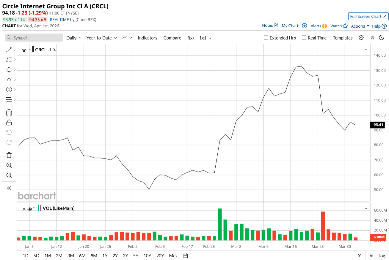 Valued at a market cap of $22.2 billion, CRCL stock is up 18% on a year-to-date (YTD) basis. Notably, Wood's funds bought about 161,000 shares of the company, ranging in value between $16 and $17 million.