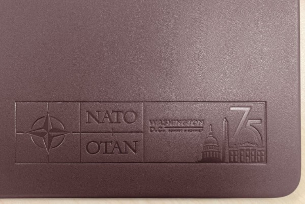 It all started with a call from their client, needing a rush order to be imprinted and delivered to Washington, D.C. in time for the historic event. After creating an art proof of the NATO Summit logo and receiving the client’s approval, they ordered the metal die for imprinting before their cutoff time, ensuring this would arrive on schedule. This was all done within an hour and a half.