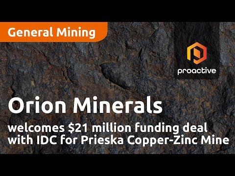 Orion Minerals Ltd (ASX:ORN, JSE:ORN) CEO Errol Smart speaks with Proactive soon after announcing the company has signed a definitive agreement for a ZAR 250 million (~A$21 million) senior secured convertible loan facility with the Industrial Development Corporation of South Africa Limited (IDC) to fund early mining work and pre-development at the Prieska Copper-Zinc Mine. He says it’s a hugely exciting time with the company entering the final stages of early development studies and preparing for the imminent transition to development.