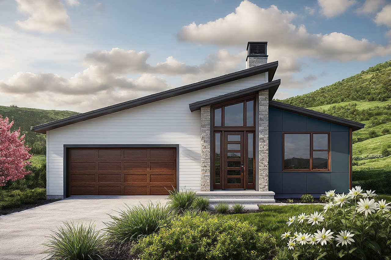 Designed to meet the demands of modern living, the Juniper Glen is a contemporary one-story house plan that blends clean architectural lines with warm, light-filled interiors. This thoughtfully crafted modern home design emphasizes open-concept living, indoor-outdoor connection, and efficient single-level functionality—key features driving today’s interest in modern house plans and lifestyle-focused home design. With its vaulted living spaces, expansive windows, and refined yet approachable aesthetic, the Juniper Glen reflects the growing trend toward comfortable, high-performance homes that balance everyday livability with elevated design.